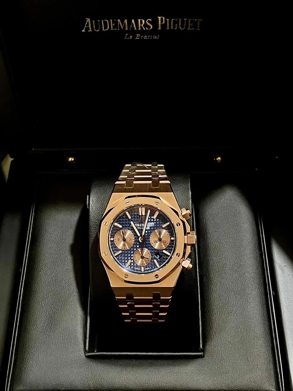 Audemars Piguet Royal Oak Selfwinding Chronograph — 41 mm Rose Gold, Blue Tapisserie Dial