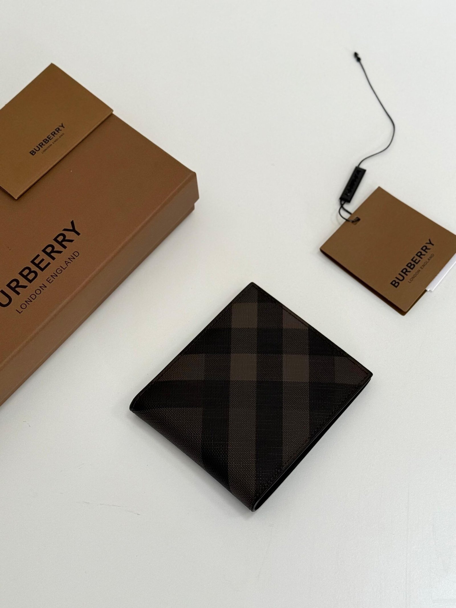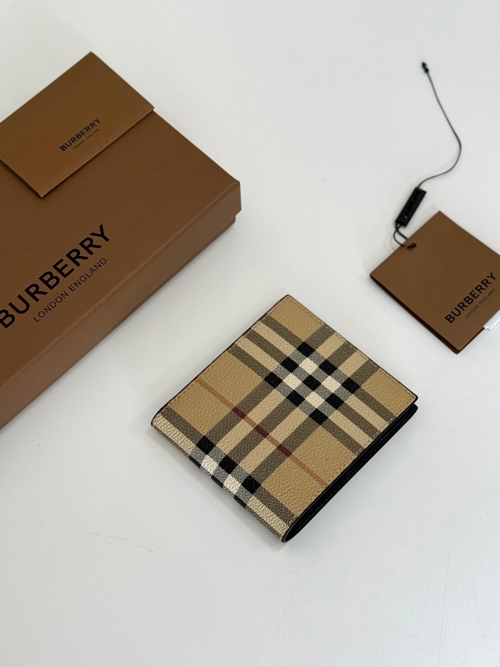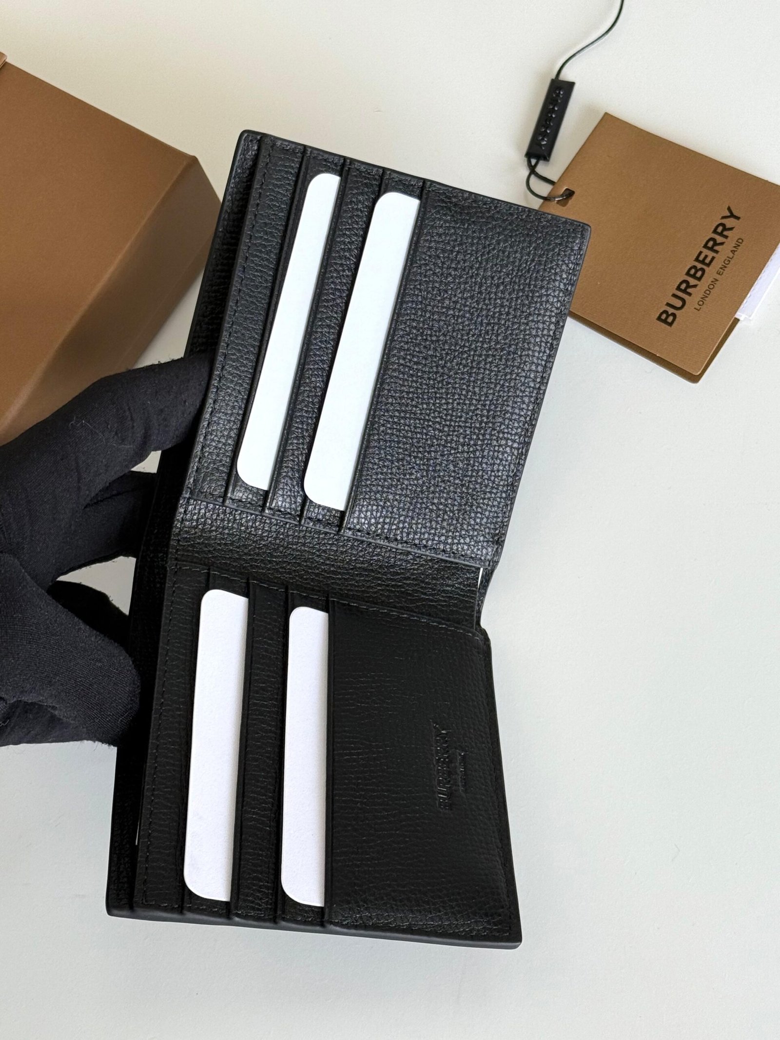 This exquisite wallet is crafted from high-quality grained calf leather. This material is renowned for its durability and beautiful texture, which resists scratching and wear. The design is a sophisticated Continental style, offering a long, fold-over silhouette. It is often secured with a snap-button closure or a zip-around mechanism. Inside, the wallet is expertly organized with multiple card slots, banknote compartments, and a dedicated zip pocket for coins. It may feature subtle Burberry branding, such as the engraved logo or a hint of the signature check lining, reflecting the House’s heritage. This wallet combines practical functionality with the polished, understated aesthetic that defines Burberry.