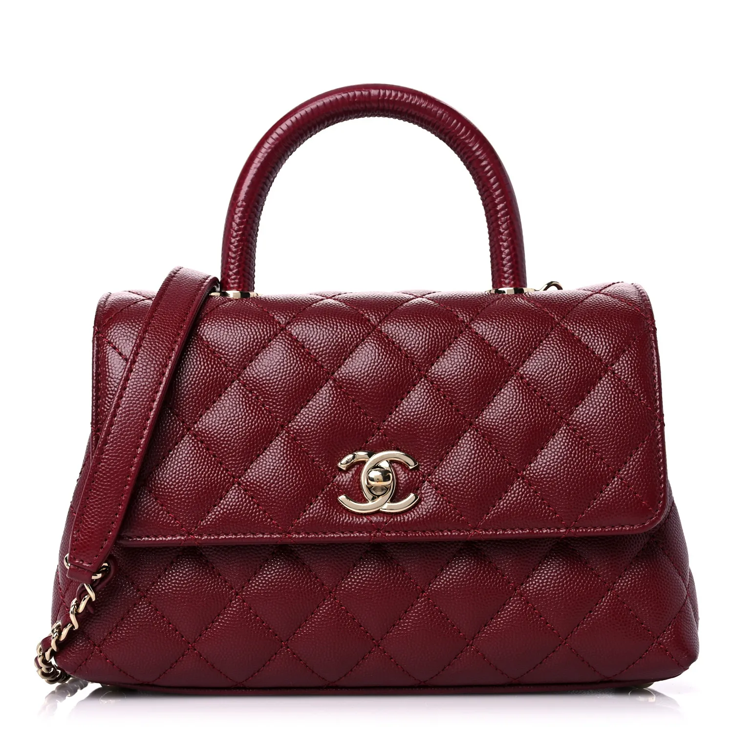 Chanel Mini Coco Handle — Burgundy Caviar, Lizard-Embossed Top Handle