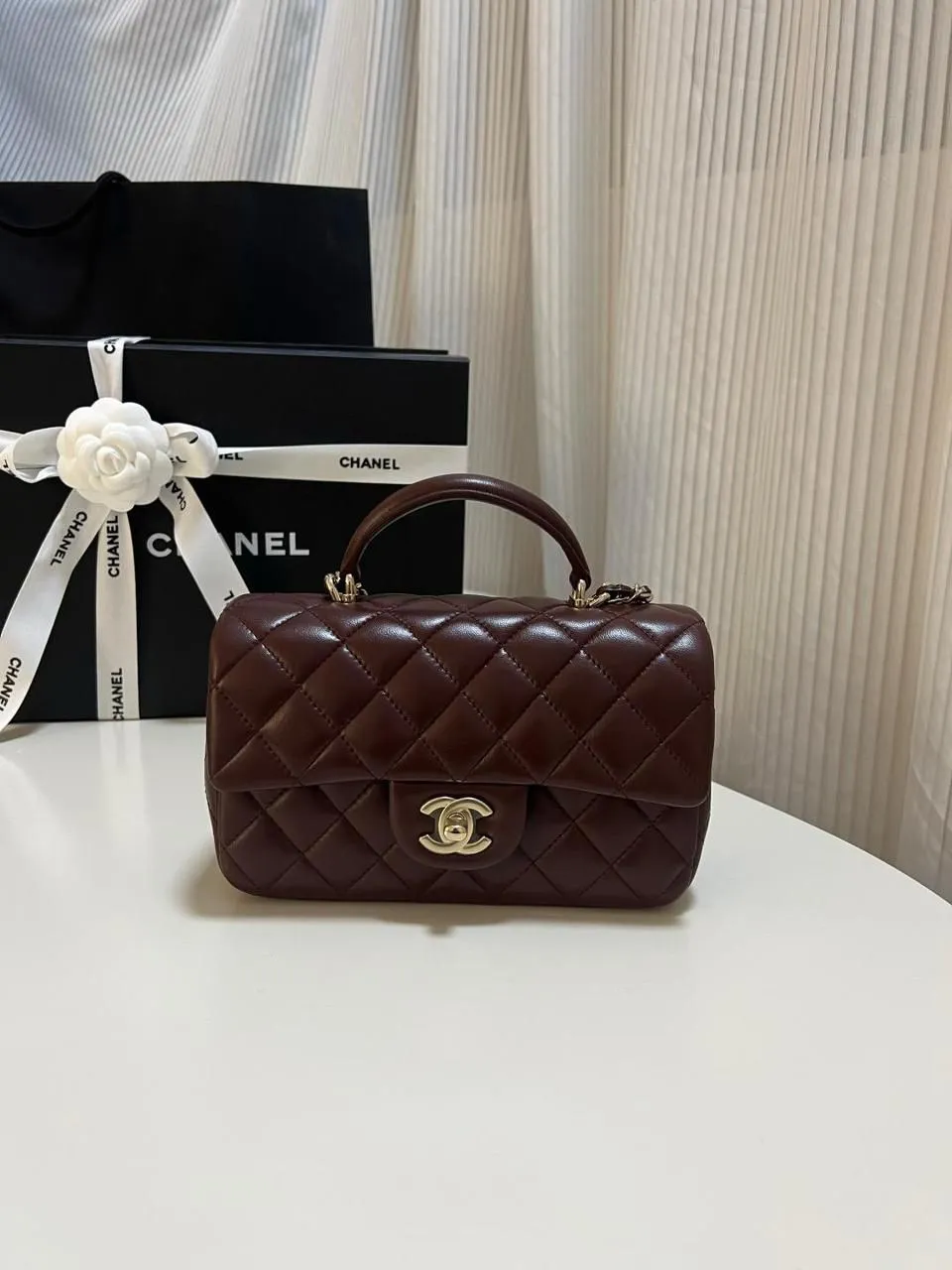 • Brand/Model: Chanel Lambskin Quilted Bi-Color Mini Top Handle Rectangular Flap