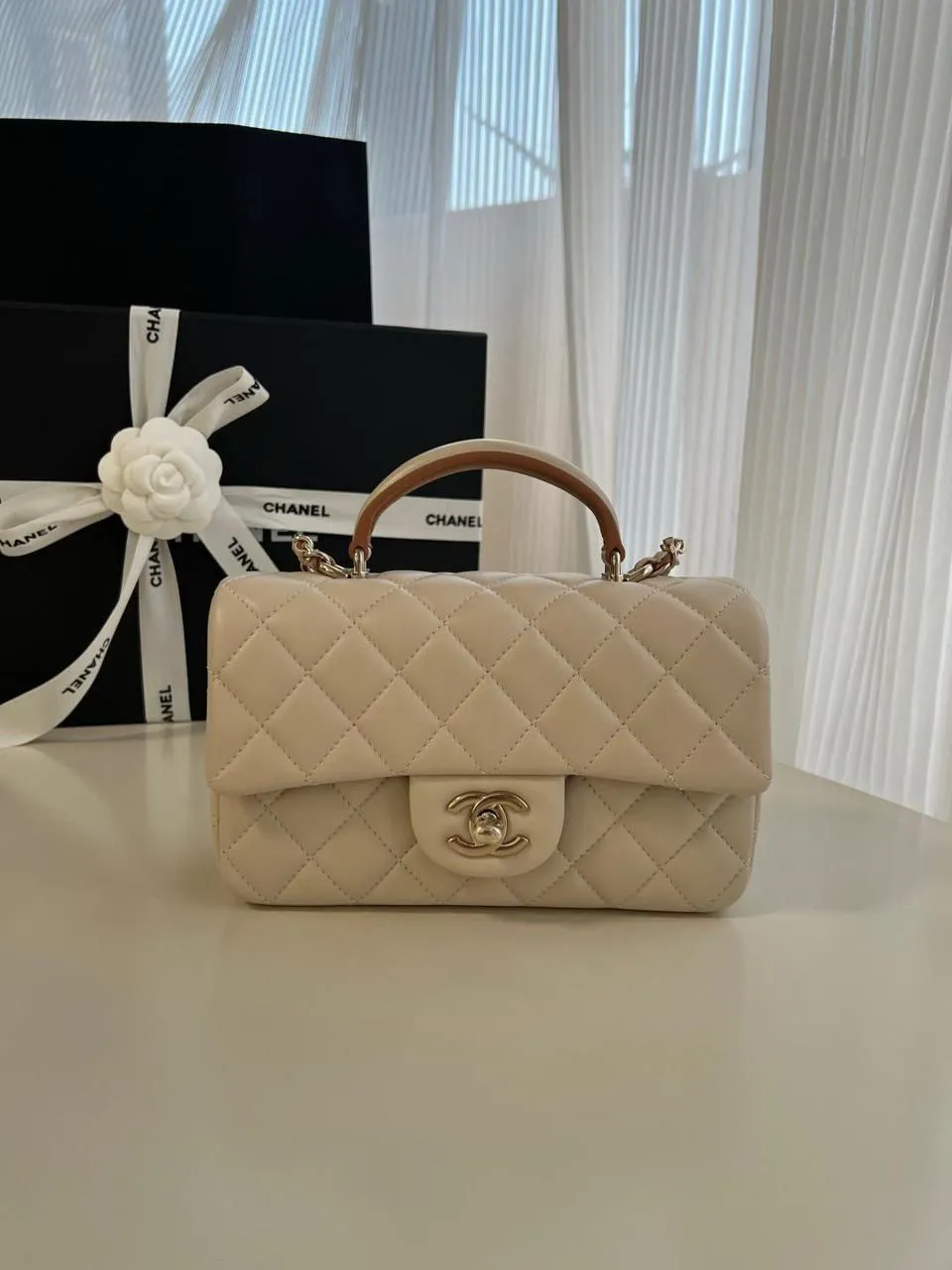 Chanel Bi-Color Mini Top Handle Rectangular Flap — Ecru & Dark Beige Lambskin