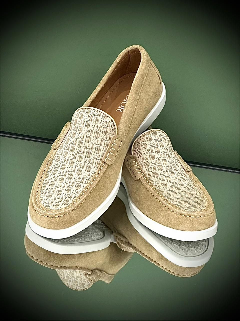 Crafted in Italy, the Dior Granville Loafer features supple suede paneling, which provides a soft, premium texture. This is elegantly contrasted with sections of the signature Dior Oblique pattern woven into the durable jacquard fabric. This motif is a subtle nod to Dior’s history, making the loafer instantly recognizable.