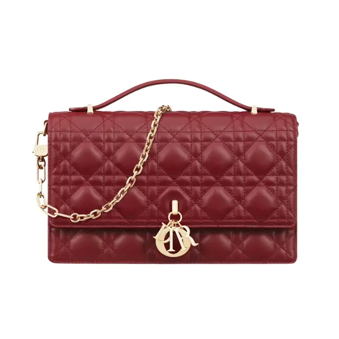 • Color/Accents: Cherry red; front D.I.O.R. letter charms