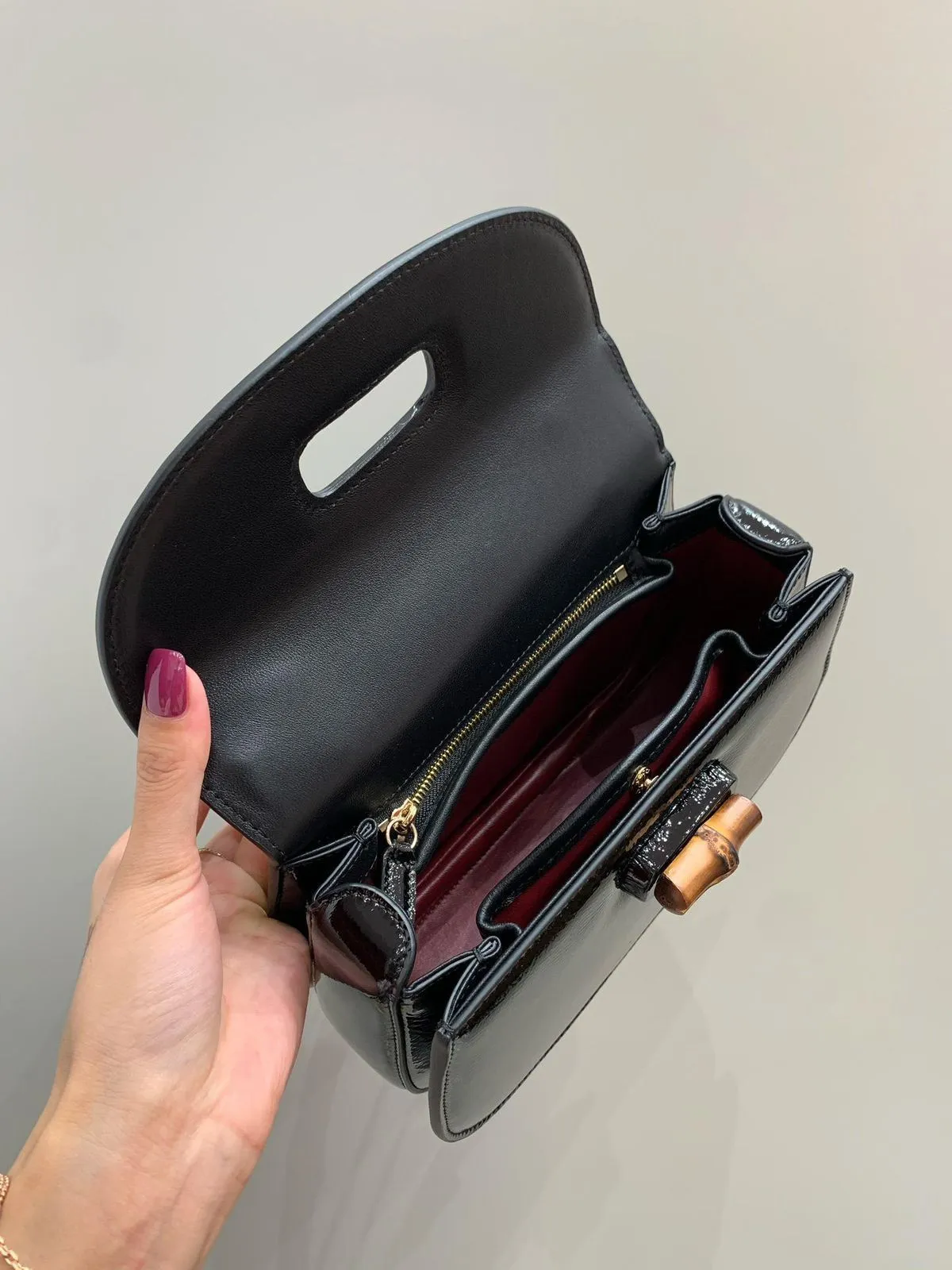 Gucci Bamboo 1947 Mini Top Handle Bag — Black Python, Bamboo Handle & Closure