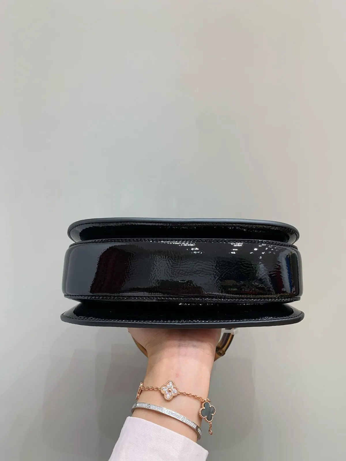 Exotic black python leather with a glossy, patent-like finish for shape and light reflection. Fully lined in smooth leather.