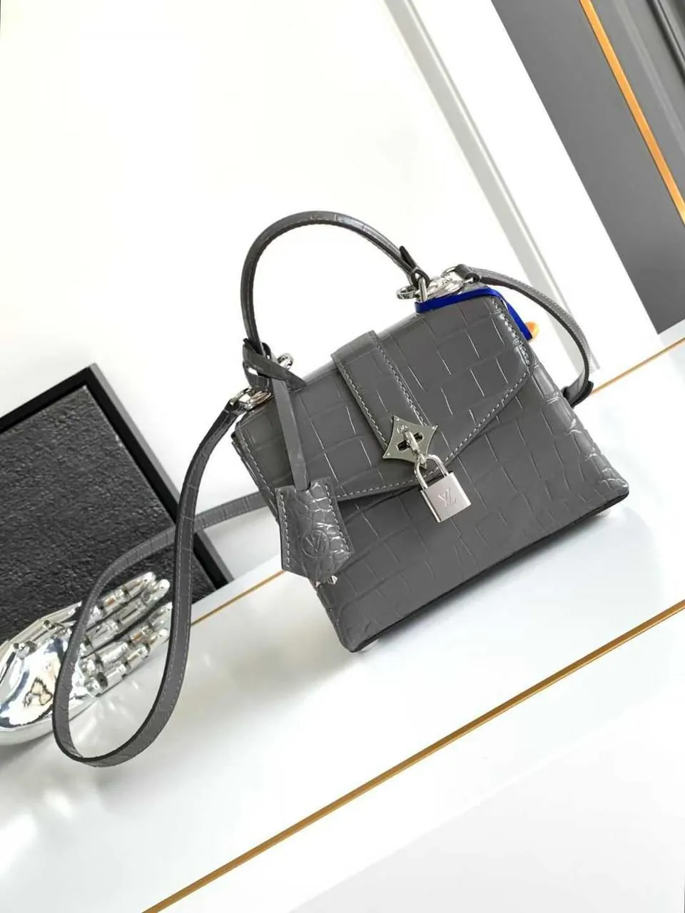 Compact Louis Vuitton mini in exotic leathers and mixed colors, crafted in France. Comes with detachable strap and mirror for flexible carry and quick touch-ups.