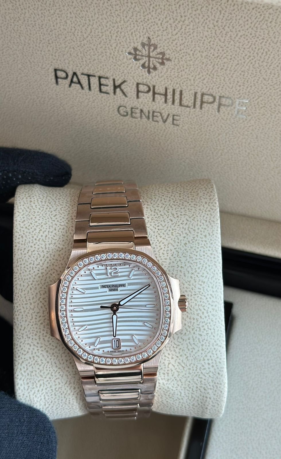 The Patek Philippe Ladies’ Nautilus is a stunning symbol of feminine elegance and refined craftsmanship. Designed for women who appreciate timeless luxury, this rose gold automatic watch beautifully balances sophistication with modern functionality. The silvery dial enhances the warm tone of the rose gold case and bracelet, while the sapphire crystal ensures lasting clarity and durability. Perfect for both everyday wear and special occasions, this piece captures the signature Nautilus charm in an elegant, feminine form.