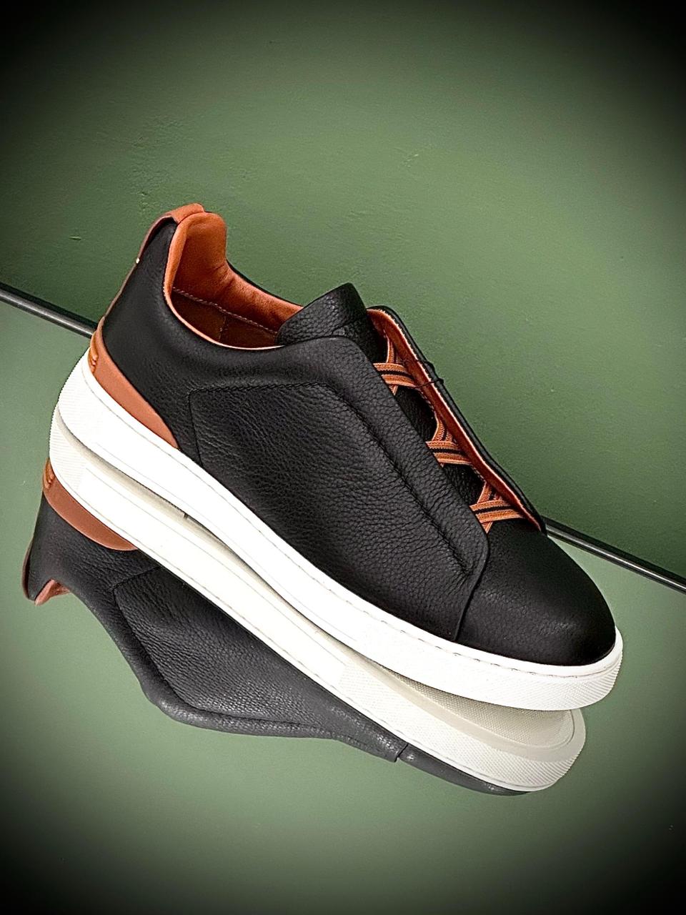 Introducing the pinnacle of luxury footwear: the Triple Stitch Alligator Leather & Suede Sneakers. These sneakers redefine high-end casual style. They combine the versatility of a low-top sneaker with the exclusivity of exotic materials. This pair is perfect for the discerning individual.